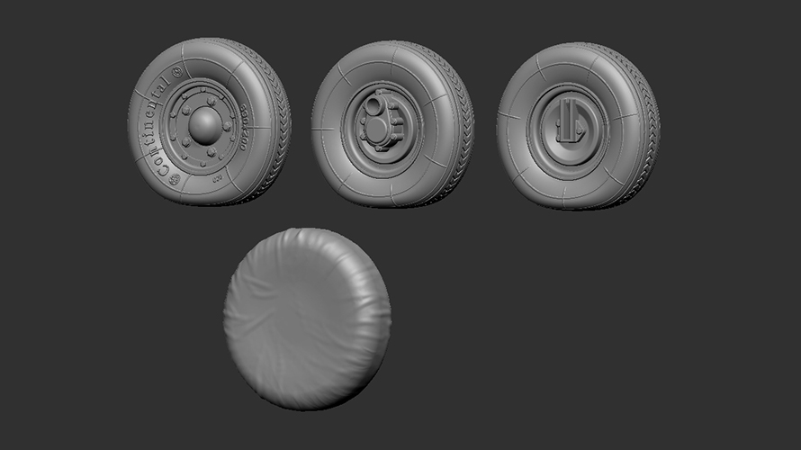 Kübelwagen balloon-type wheels (underinflated) with tread pattern.
